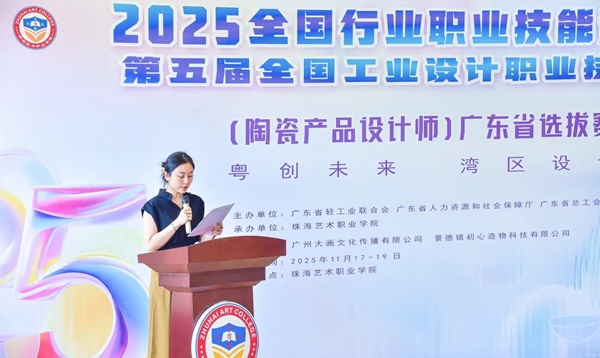 11月17日下午,由广东省轻工业联合会、广东省人力资源和社会保障厅、广东省总工会联合主办,珠海艺术职业学院艺术设计学院承办的“2025年全国工业设计职业技能大赛——陶瓷产品设计师赛项广东省选拔赛”在我校隆重开幕。