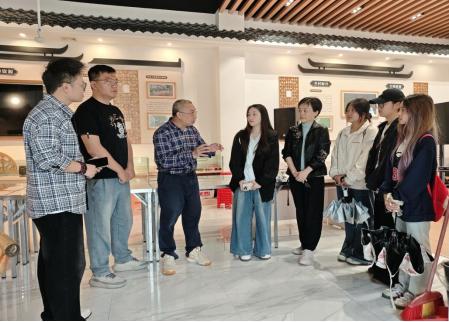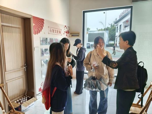 随后,师生团队怀着崇敬的心情参观了石龙村村史馆。在村官的引导下,师生们透过泛黄的老照片和珍贵的实物展品,系统回顾了石龙村从贫困落后到富裕美丽的沧桑巨变。馆内特设的非遗文化展区,生动展示了石龙村深厚的历史底蕴和独特的民俗风情。