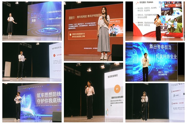 在第11个全民国家安全教育日到来之际,我校隆重举办了以“统筹发展和安全,护航‘十五五’新征程”为主题的全民国家安全教育日宣传活动暨国家安全主题演讲比赛。本次比赛由学校党委主办,党委宣传部、党委保卫部(保卫处)、党委学生工作部(学生处)、校团委及各二级学院承办,文化与旅游学院、音乐舞蹈学院、新闻中心等单位协办,分预赛、决赛两个阶段。自比赛启动以来,各二级学院积极响应,层层选拔出优秀选手站上决赛舞台。比赛不仅增强了师生的国家安全意识,更激发了师生主动思考、积极践行国家安全责任的热情。